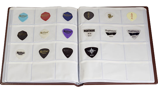 大切なギターピックのコレクションを、綺麗に整理して保存することができます。ピック専用の台紙は20ページあります。1ページに12のポケットがあるので、全部で240ポケットです。